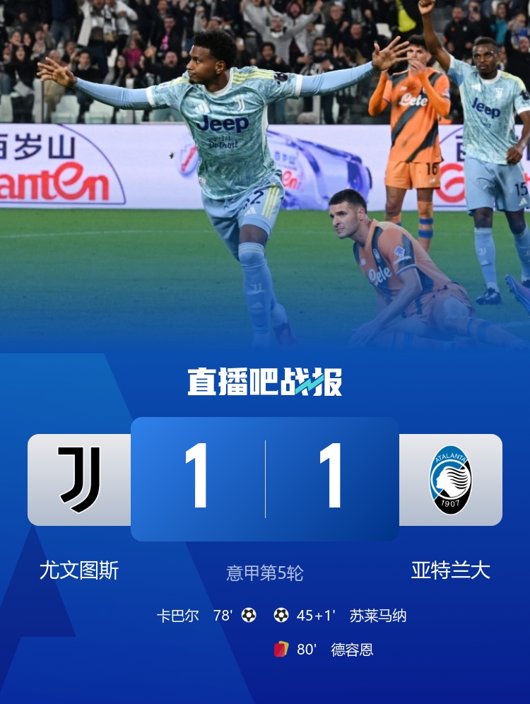 尤文在五轮不败中与十人亚特兰大握手言和 卡巴尔替补救主阿季奇因失误导致丢球_意甲直播