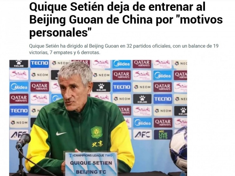 西方媒体报道塞蒂恩因个人和家庭原因选择辞职_中超直播