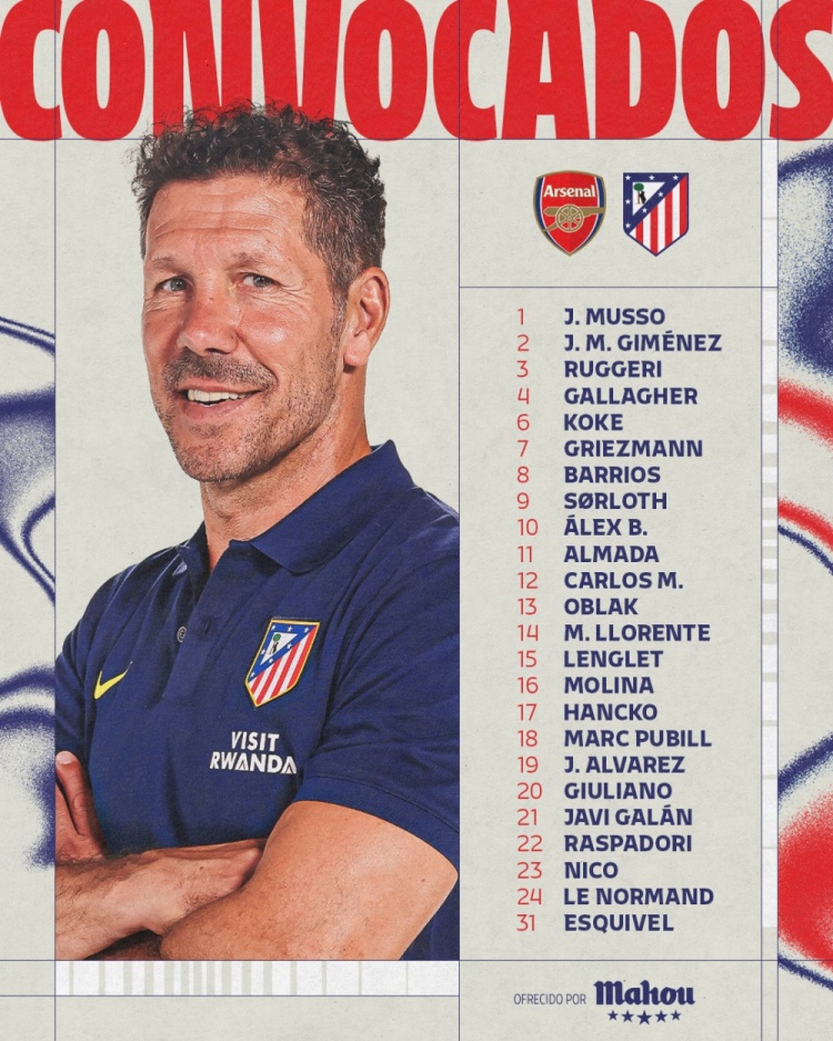 前锋线上,马竞有格列兹曼、瑟尔洛特、阿尔马达、阿尔瓦雷斯、朱利亚诺-西蒙尼、拉斯帕多里和尼古拉斯-冈萨雷斯。每位前锋都具备独特的实力与风格,他们的表现将对球队是否能在遭遇强敌阿森纳时取得胜利至关重要。