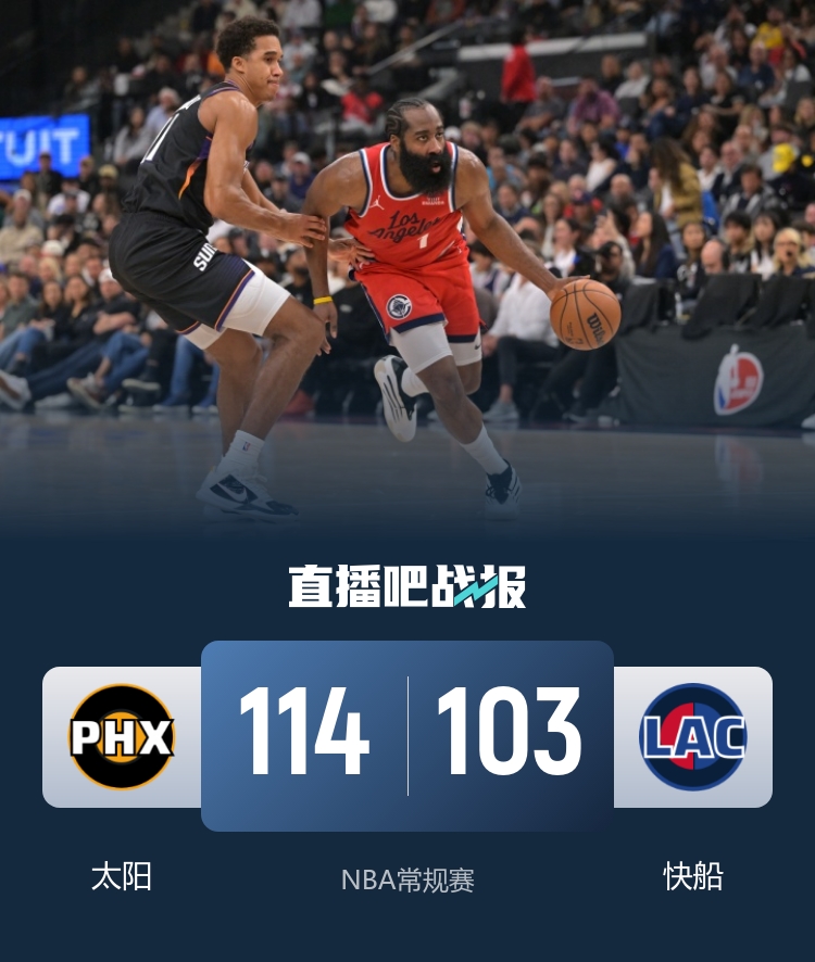 快船再次输给太阳遭遇四连败 小卡缺席 布克贡献21分10篮板9助攻 哈登15投4中得到13分13助攻_nba直播在线观看