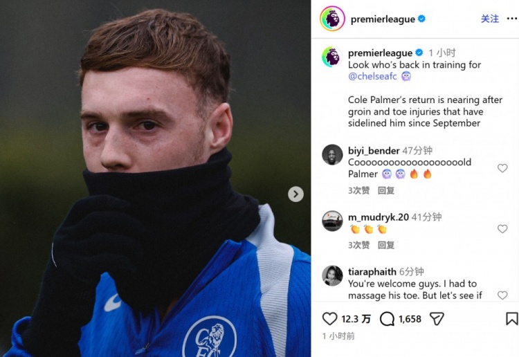 帕尔默回归切尔西训练 本赛季表现出色已打入2球_英超直播免费