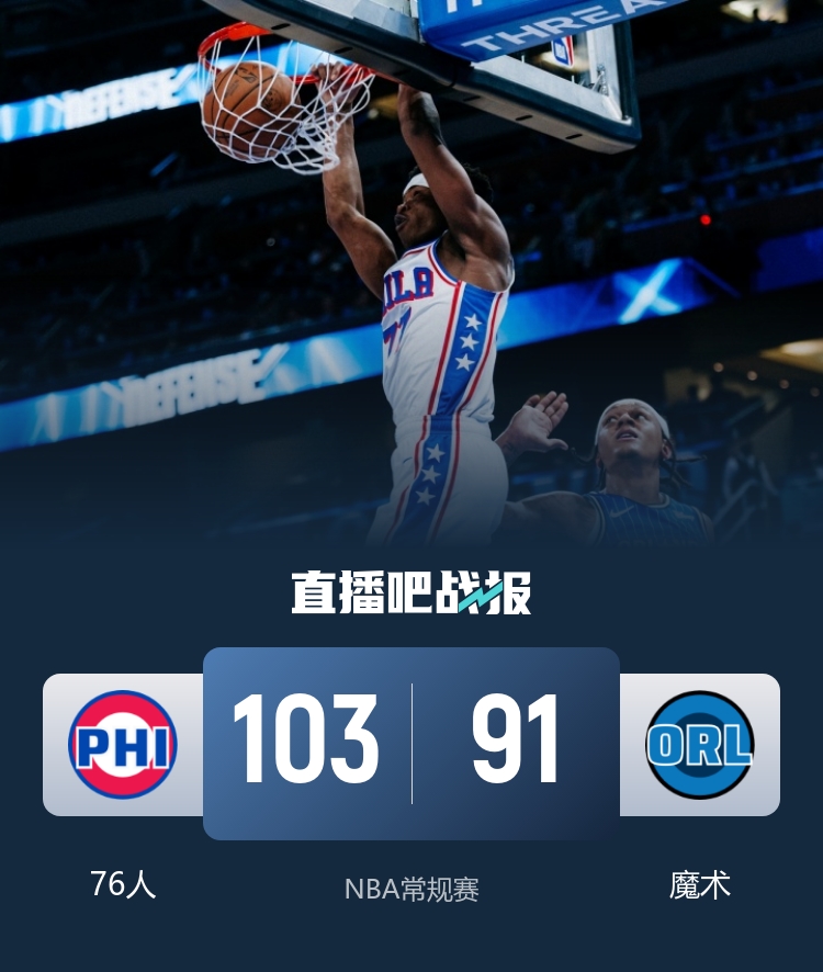 76人再一次瞎胡闹 魔术毫无招架之功 马克西像影子一样迷人 恩比德的数字也只够应付牙膏广告 贝恩的表现勉强像个角色球员_NBA直播