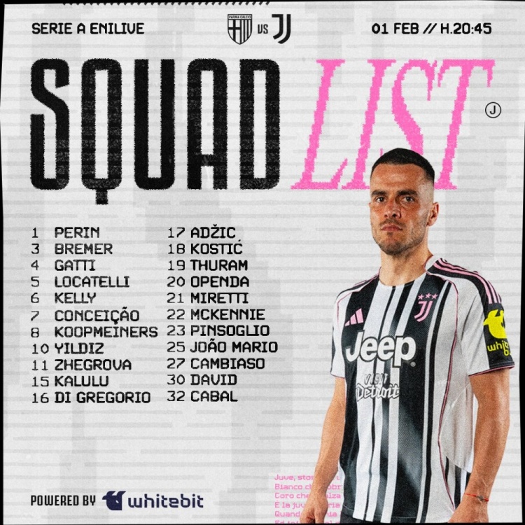 北京时间2月2日凌晨3:45,2025-26赛季意甲联赛第23轮将迎来一场焦点战役,尤文图斯将客场挑战帕尔马。根据尤文官方最新发布的比赛大名单,前锋伊尔迪兹将作为进攻核心,而洛卡特利则将负责中场的调度和防守工作。