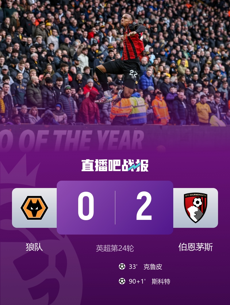 狼队遭遇连败 伯恩茅斯轻松取胜 樱桃队表现抢眼_英超直播