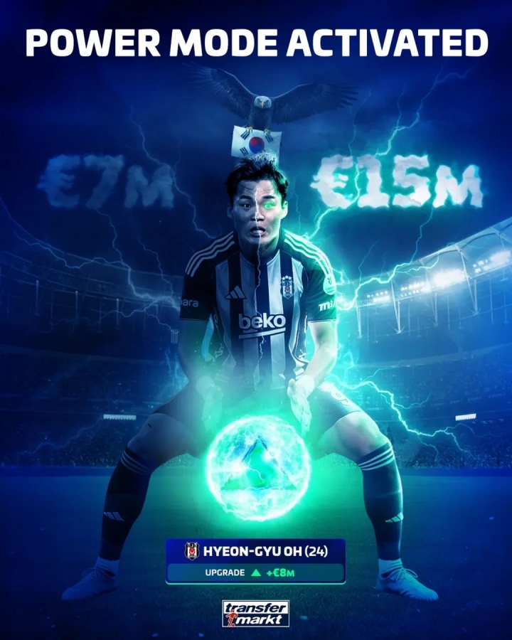 在韩国球员身价的排名中,吴贤揆现位列第4。排在他前面的有金玟哉和李刚仁,他们的身价均为2500万欧元;孙兴慜则以1700万欧元紧随其后。吴贤揆的迅速崛起不仅体现了他在贝西克塔斯的潜力,也反映了其在国际足坛上的影响力。