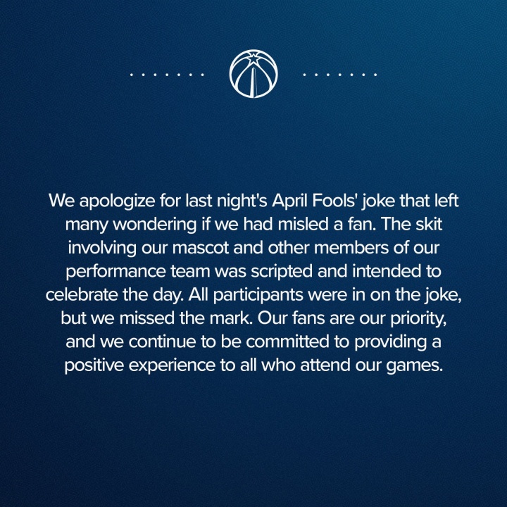 奇才官方终于意识到愚人节不应该当真 球迷依然是他们的第二选择_NBA直播